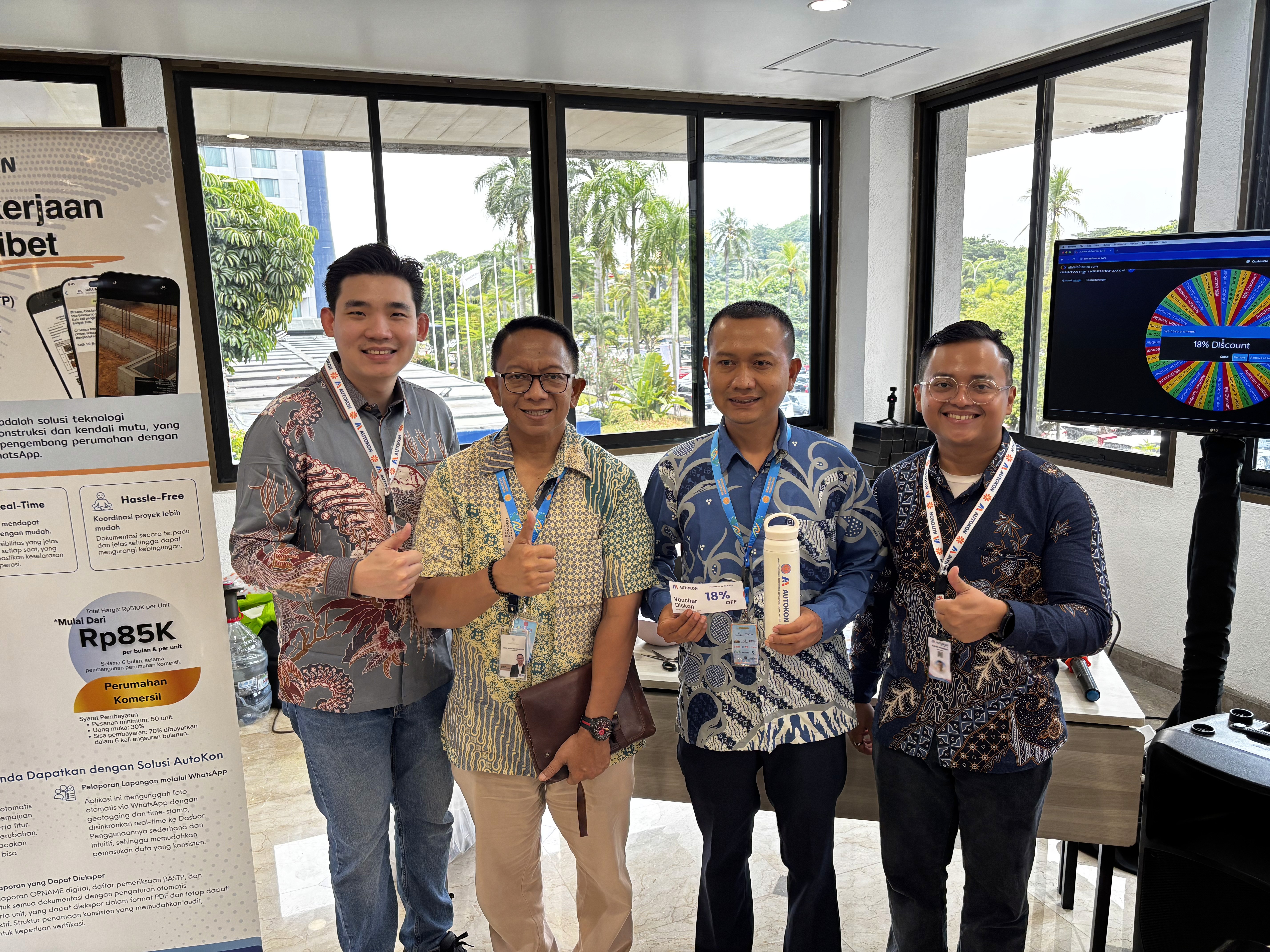 Selama acara ini, ratusan pengembang mengunjungi stan kami untuk mempelajari bagaimana AutoKon Deliver menghilangkan proses pengisian dokumen secara manual, memperbaiki koordinasi proyek, dan memberikan visibilitas real-time dengan menggunakan alur berbasis WhatsApp yang sederhana. Banyak yang merasa cocok dengan misi kami untuk mendukung sektor perumahan Indonesia yang terus berkembang dengan teknologi yang bebas kertas, real-time, dan tanpa ribet, seperti yang disoroti dalam materi acara kami.